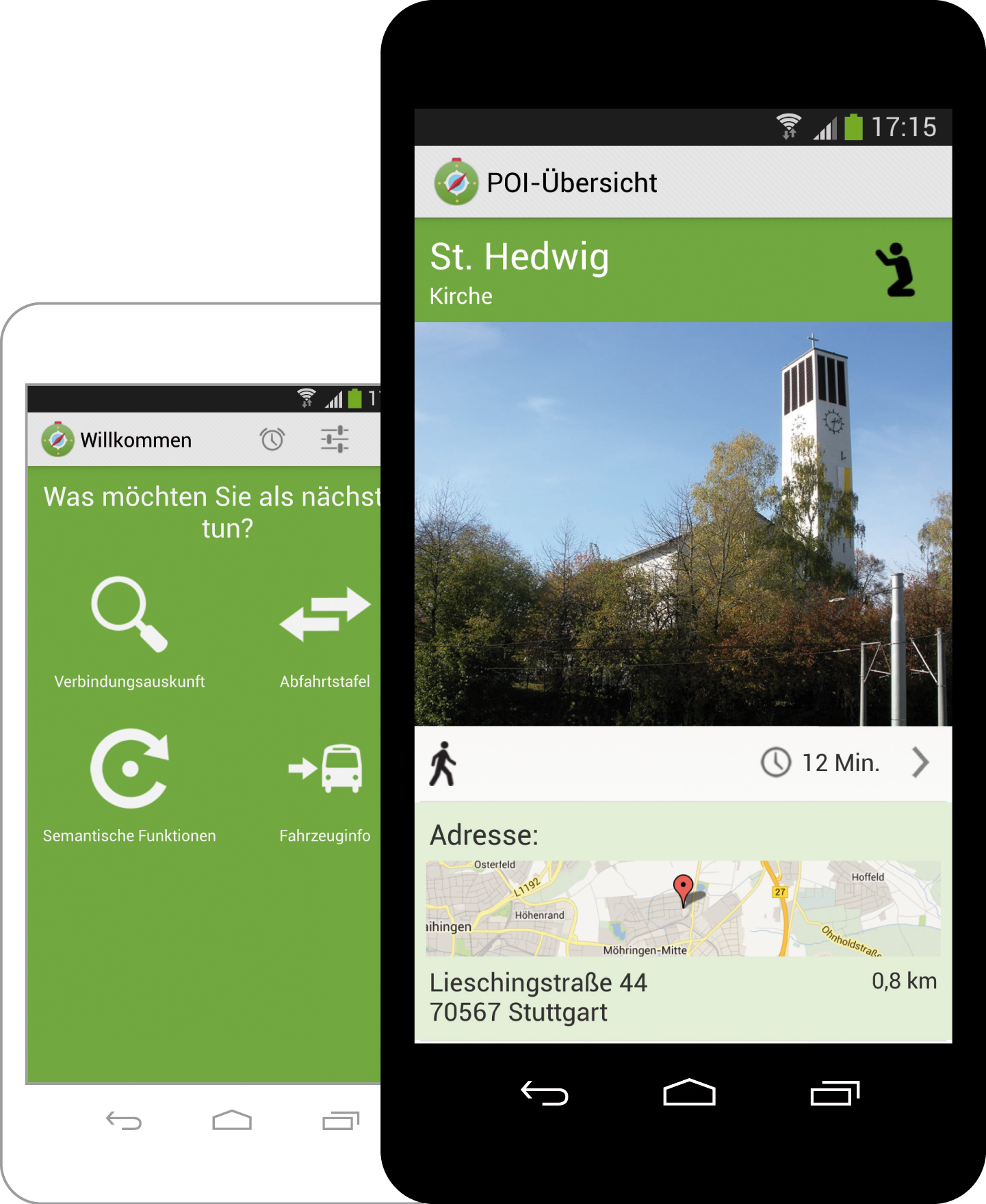 Auf Basis der Schnittstellen und Anforderungen wurden drei Ontologien entwickelt. Das Klassifikationsmodell bildet grundlegende Entitäten des öffentlichen Verkehrs, wie Haltestellen und Linien ab. Aufbauend darauf wird im Kontextmodell der Fahrgastkontext modelliert, um kontextadaptive Dienste zu ermöglichen. Das Interaktionsmodell dient der Integration domänenspezifischer Ontologien, beispielsweise für intelligente Anwendungen im Tourismus. Um die entwickelten Schnittstellen praxisnah zu testen wurden im Anschluss an die Analysephase mehrere verschiedene Prototypen erstellt. Sie setzen dabei das im AK entwickelte Architekturkonzept aus einem Portalsystem und einer App auf dem mobilen Kundengerät um. Das Portalsystem bündelt verschiedene Kommunikationsdienste und führt die vielfältigen Informationen aus verschiedenen Quellen zusammen, wie z.B. TRIAS, externe Mehrwertdienste, semantische Dienste und Personalisierung. Über die mobile Applikation kann der Fahrgast über das Portalsystem auf die TRIAS-Dienste zugreifen und wird über eine direkte WLAN-Schnittstelle im Fahrzeug mit aktuellen Fahrtinformationen versorgt. Ein Katalog mit User Interface Pattern bildet die Grundlage für die gebrauchstaugliche Ausgestaltung von Applikationen für mobile Fahrgastinformationen.